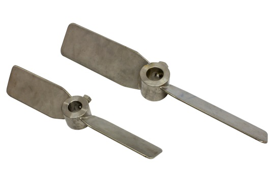 Folding impellers are most commonly used in mixing applications where access to the vessel is limited, such as Drums or IBC Tank. WEMIX folding impeller design is essentially from two blades to four blades, pitch blade turbine impeller design, where the blades fold down against the shaft when not in use. The folding design allows the impeller and shaft to be inserted and retracted through the opening of the drum or IBC tank.